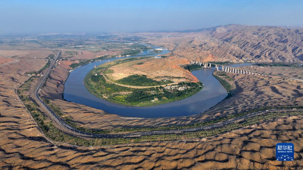 這是流經寧夏中衛市沙坡頭區的黃河(9月6日攝,無人機照片)。
