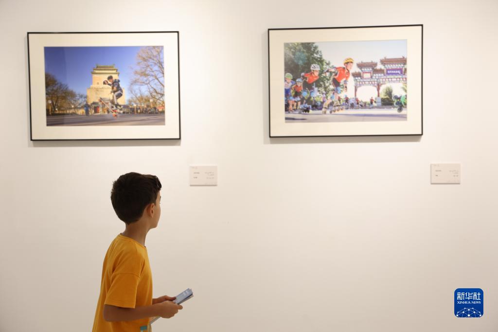 9月21日,在摩洛哥首都拉巴特,一名摩洛哥兒童在“你好,北京”文旅交流活動中參觀攝影展。