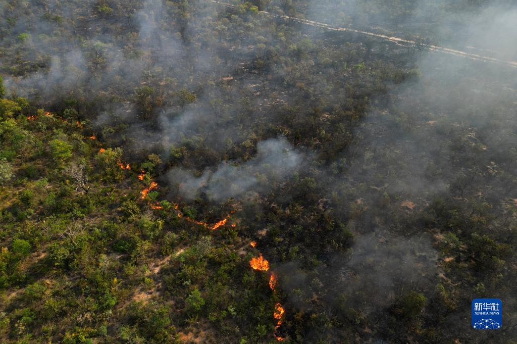 這是9月21日在巴西巴伊亞州巴雷拉斯市附近拍攝的森林火災現場(無人機照片)。