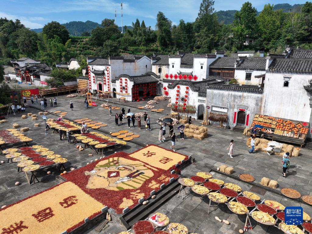 金秋時節,在安徽省黃山市徽州區呈坎村及黃山市歙縣深渡鎮陽產村,“曬秋”成為秋天里一道靚麗的風景?!皶袂铩笔峭钅系貐^的傳統習俗,由于氣候潮濕,當地村民利用晴好天氣,將收獲的農作物集中晾曬。五顏六色的農作物被拼成精美的圖案,慶祝豐收的同時,也成為當地特色景觀,吸引不少游客前來觀賞。