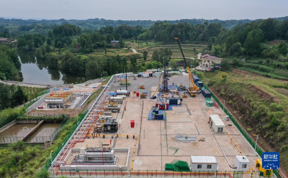 位于重慶忠縣的涪陵頁巖氣田興頁L1001井生產作業現場(9月19日攝,無人機照片)。