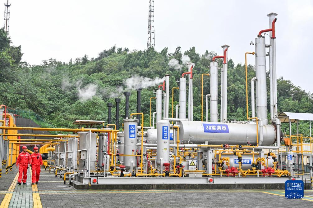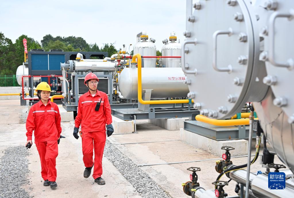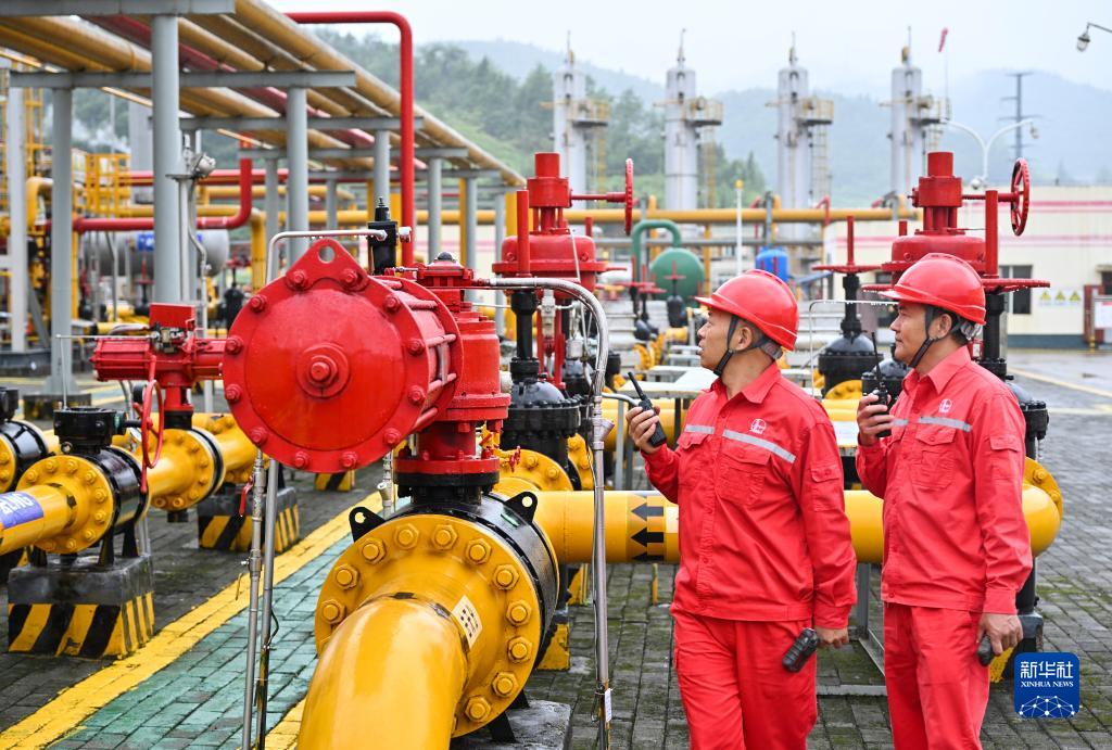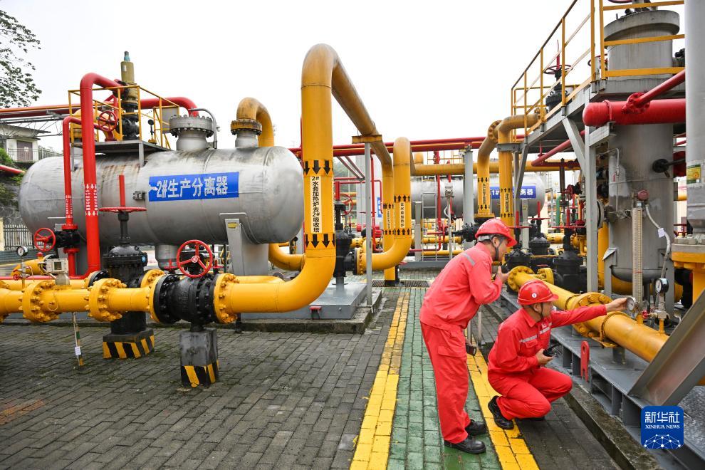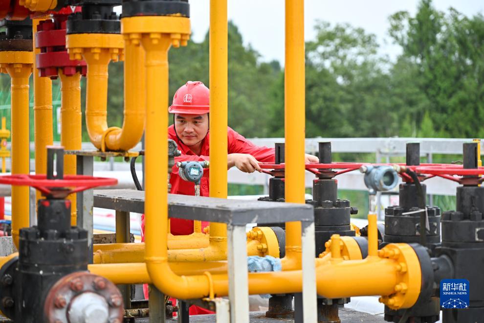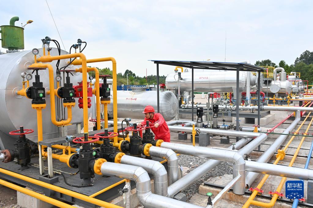 技術人員在位于重慶涪陵的涪陵頁巖氣田白濤集輸站對設備進行巡檢(9月21日攝)。