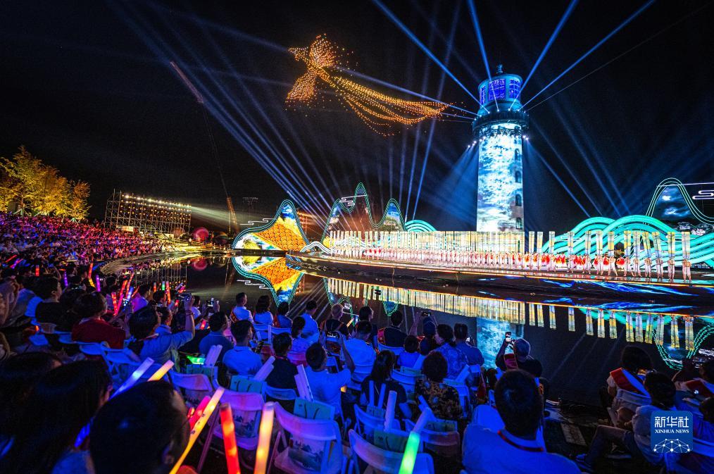 9月16日,第十四屆中國長江三峽國際旅游節開幕式在湖北省宜昌市燈塔廣場舉行,觀眾在欣賞開幕式表演。