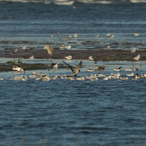 近日,大批遷徙候鳥飛抵河北省秦皇島市北戴河區沿海濕地覓食、停留,出現萬鳥臨海場景。