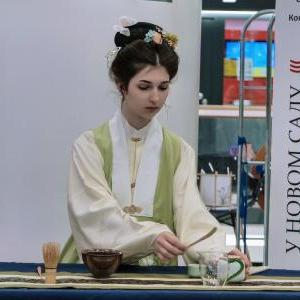 9月23日,在塞爾維亞諾維薩德舉行的“漢服節”活動上,一名學生展示漢服。