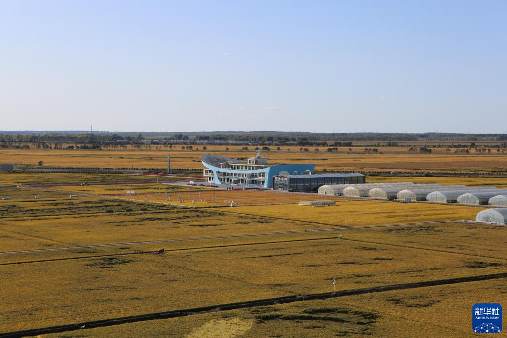 這是9月22日在富錦市拍攝的現代農業萬畝水稻科技示范園實驗基地及周邊田地。