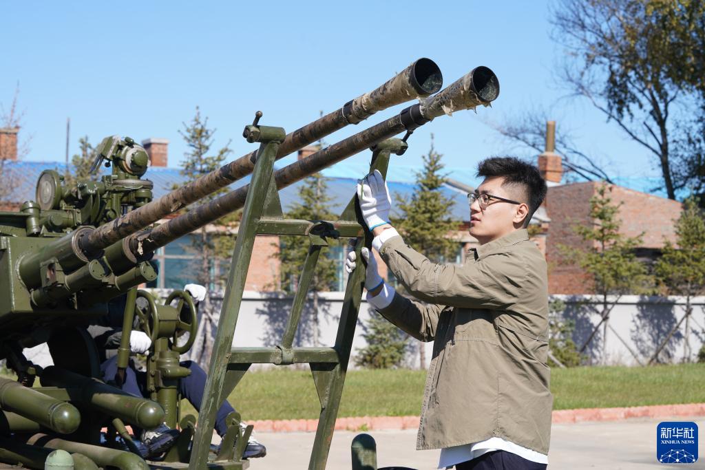 在富錦市氣象局高炮作業點,氣象員王國泰在學習人工影響天氣高炮操縱作業(9月23日攝)。