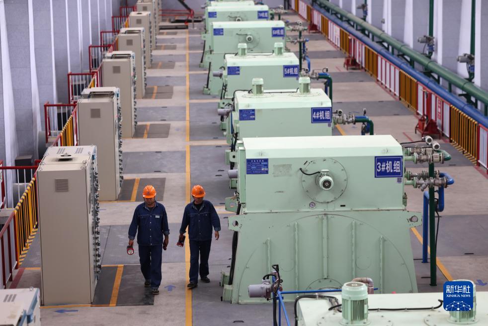 工作人員在寧夏紅寺堡揚水管理處紅三泵站進行巡檢(9月7日攝)。