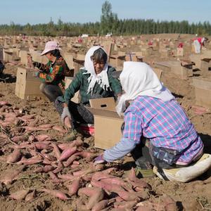金秋時節,河北省盧龍縣農民搶抓農時收獲紅薯,今年全縣紅薯種植面積達12萬畝。近年來,當地政府根據轄區沙質土壤透水透氣性好的特點,引導農民采取“合作社+農戶”的模式,規?;l展紅薯種植,并成立多家紅薯產品深加工企業,逐步探索出富有特色的“甜蜜”致富路。