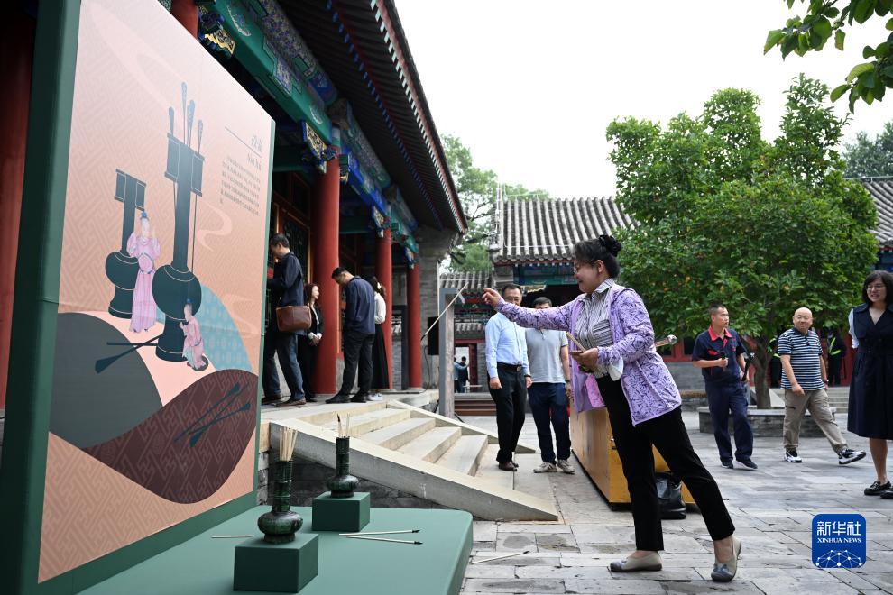 9月25日,觀眾體驗投壺。