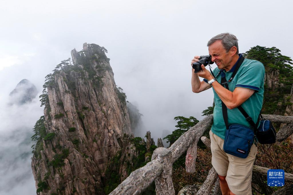 9月25日,外國游客在安徽省黃山市黃山風景區游玩。