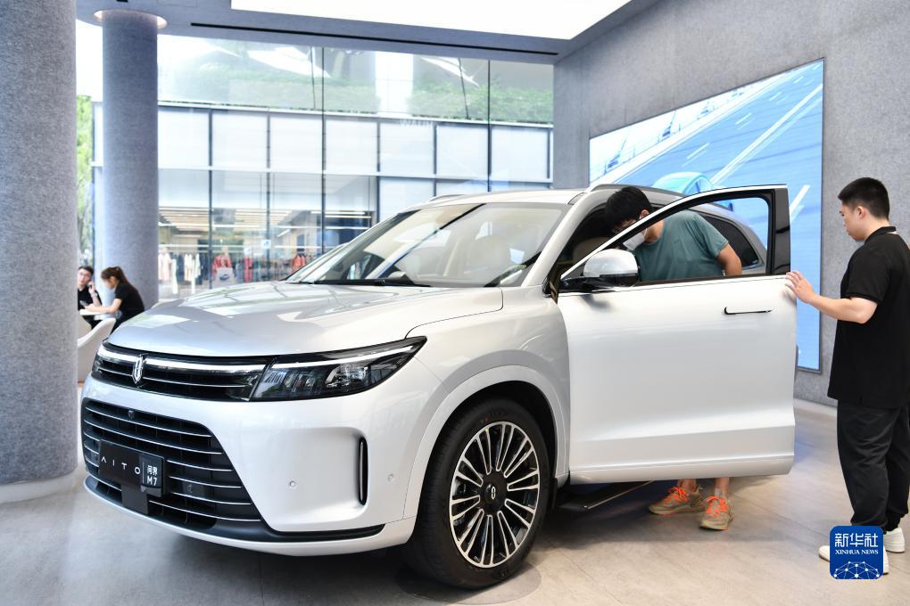 9月11日,顧客在華為深圳旗艦店體驗問界M7汽車。