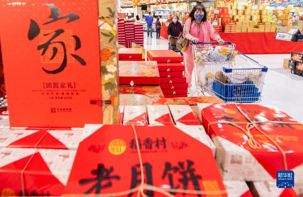9月25日,顧客在加拿大多倫多一家超市選購月餅。