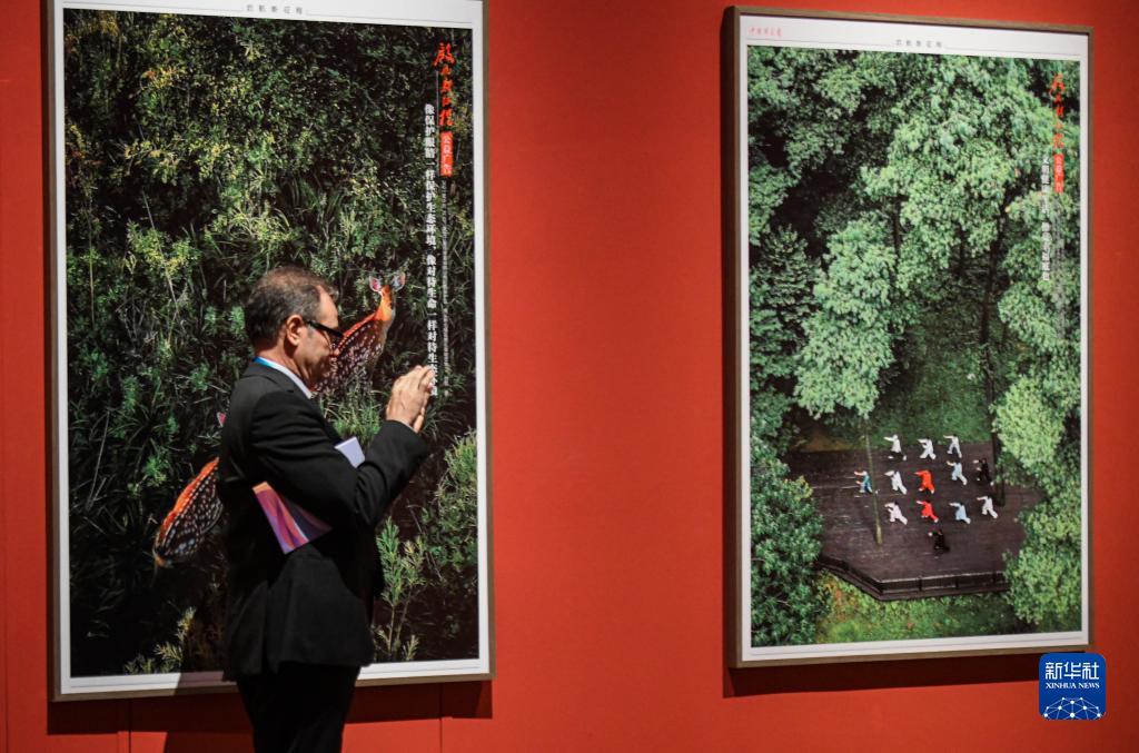 9月26日,在新疆美術館,參觀者在拍攝展出的攝影作品。