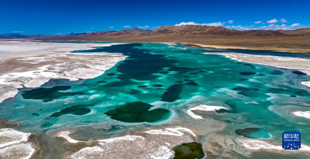 這是位于革吉縣鹽湖鄉的魯瑪仁布錯,湖畔白色地表為天然鹽礦(無人機照片,9月24日攝)。