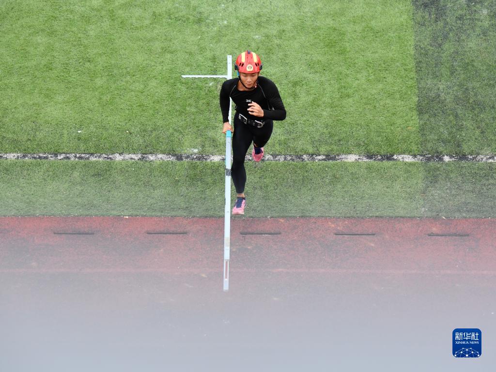 9月26日,參賽選手在進行攀登掛鉤梯比賽。