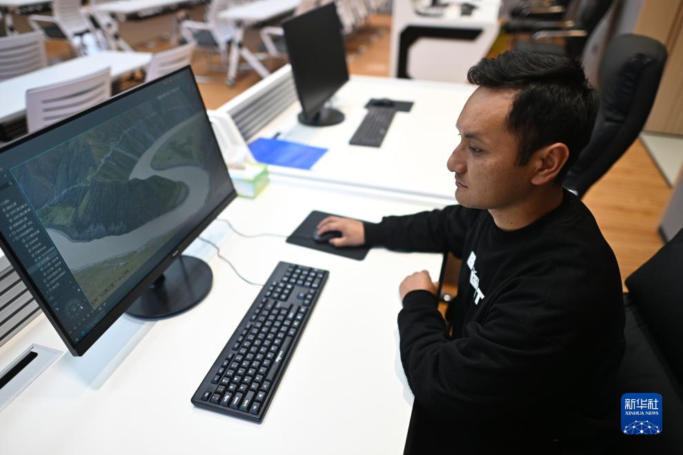 9月22日,玉樹州生態環境局宣教信息科工作人員曲達朋措展示長江源流域當曲的實時監控畫面。