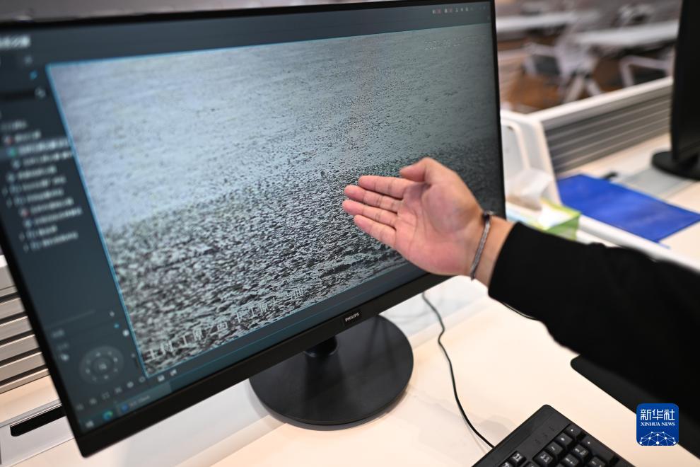 9月22日,玉樹州生態環境局宣教信息科工作人員曲達朋措展示長江源流域當曲的實時監控畫面。