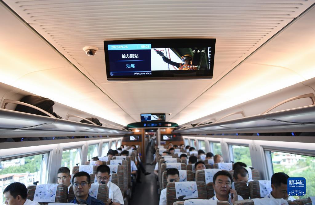 9月26日,人們乘坐廣汕高鐵首發列車。