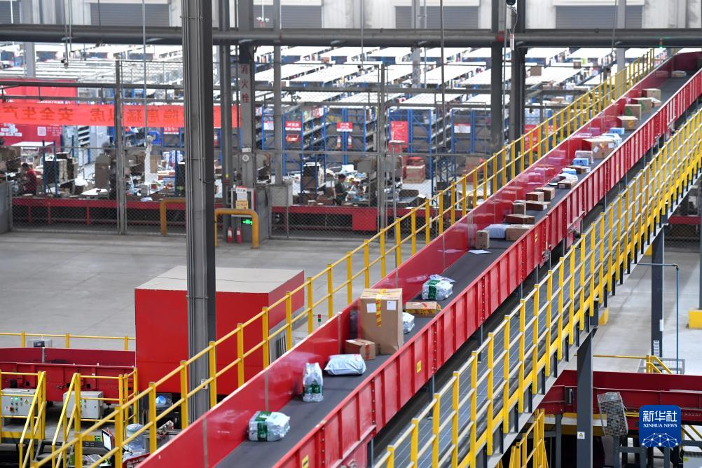 這是9月26日拍攝的河北省石家莊市京東物流園分揀中心。