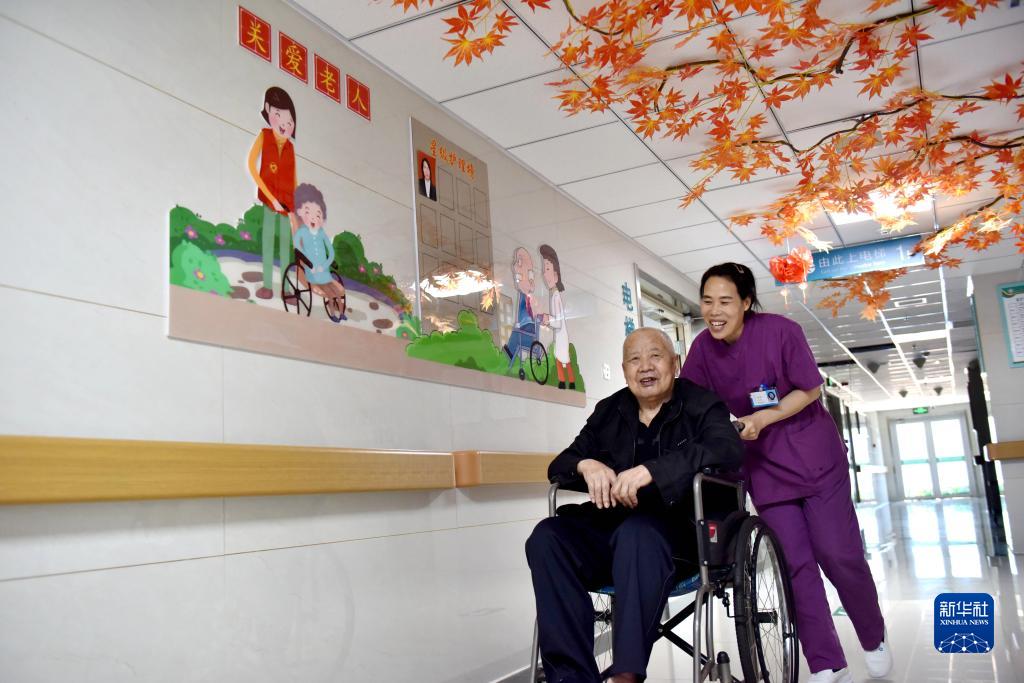 9月26日,邢臺市南和區人民醫院醫養中心工作人員陪老人散心。