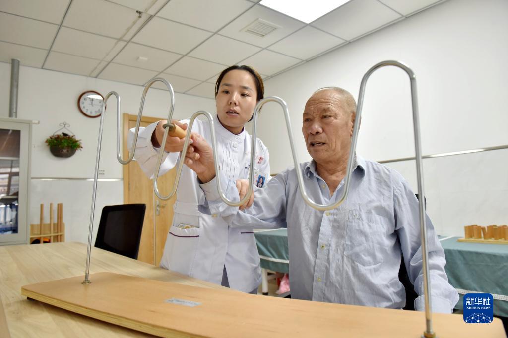9月26日,邢臺市南和區人民醫院醫養中心工作人員協助老人進行益智訓練。