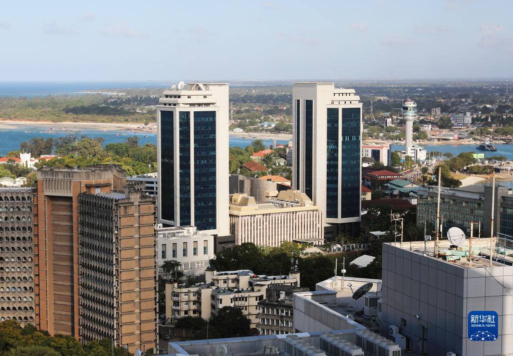 這是9月22日在坦桑尼亞達累斯薩拉姆拍攝的坦桑尼亞中央銀行(中間兩座高樓)。