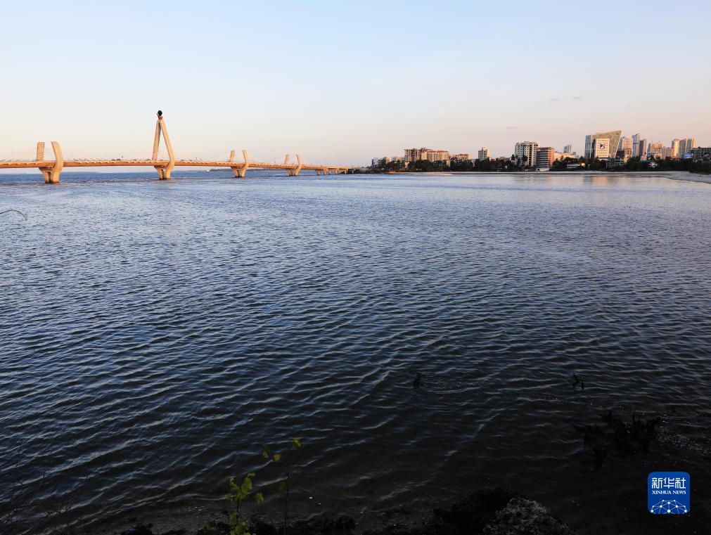 這是9月22日在坦桑尼亞達累斯薩拉姆拍攝的坦桑藍跨海大橋與城市景觀。