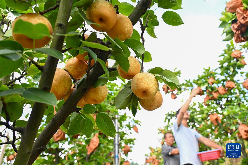 9月26日,村民在貴州省畢節市百里杜鵑管理區穎川村采摘黃梨。