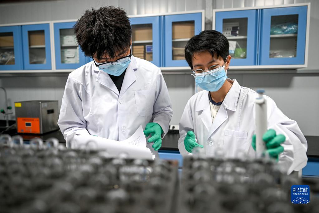 9月14日,武蓉(右)和同學處理湖水樣本。
