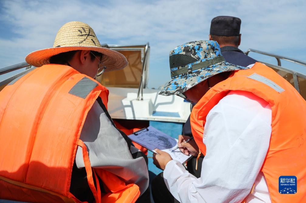 9月15日,武蓉(左)和馮琛通過地圖查看取樣點位。