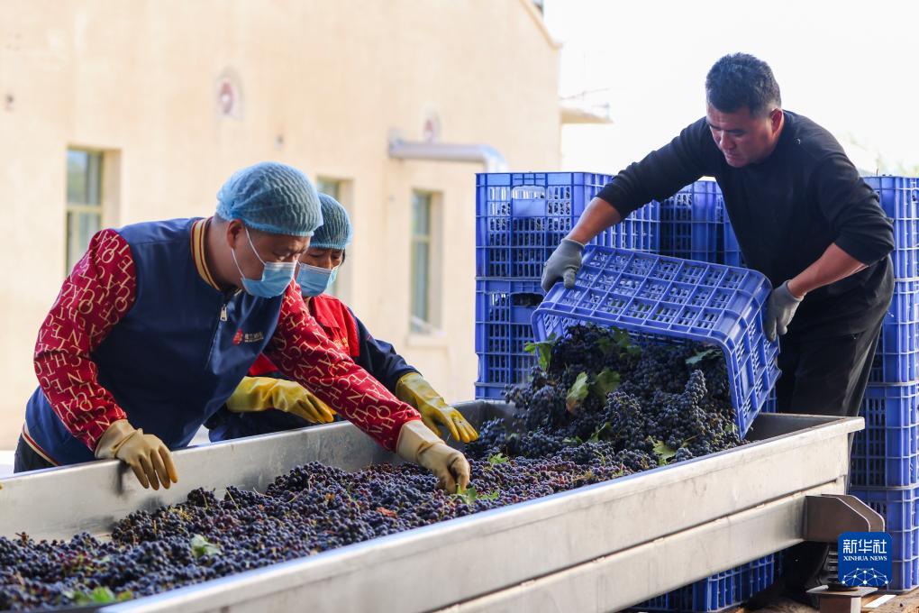 眼下,新疆吐魯番市鄯善縣的萬余畝釀酒葡萄正值成熟期,工人們忙著采摘葡萄,釀造葡萄酒。吐魯番是中國著名的葡萄產區之一,近年來,吐魯番市鄯善縣依托當地葡萄酒釀造企業優勢,加大項目扶持力度,做優做強特色酒莊。