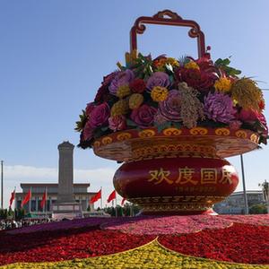 中秋及國慶節假期臨近,北京天安門廣場上的“祝福祖國”巨型花籃吸引著眾多市民游客參觀游覽。