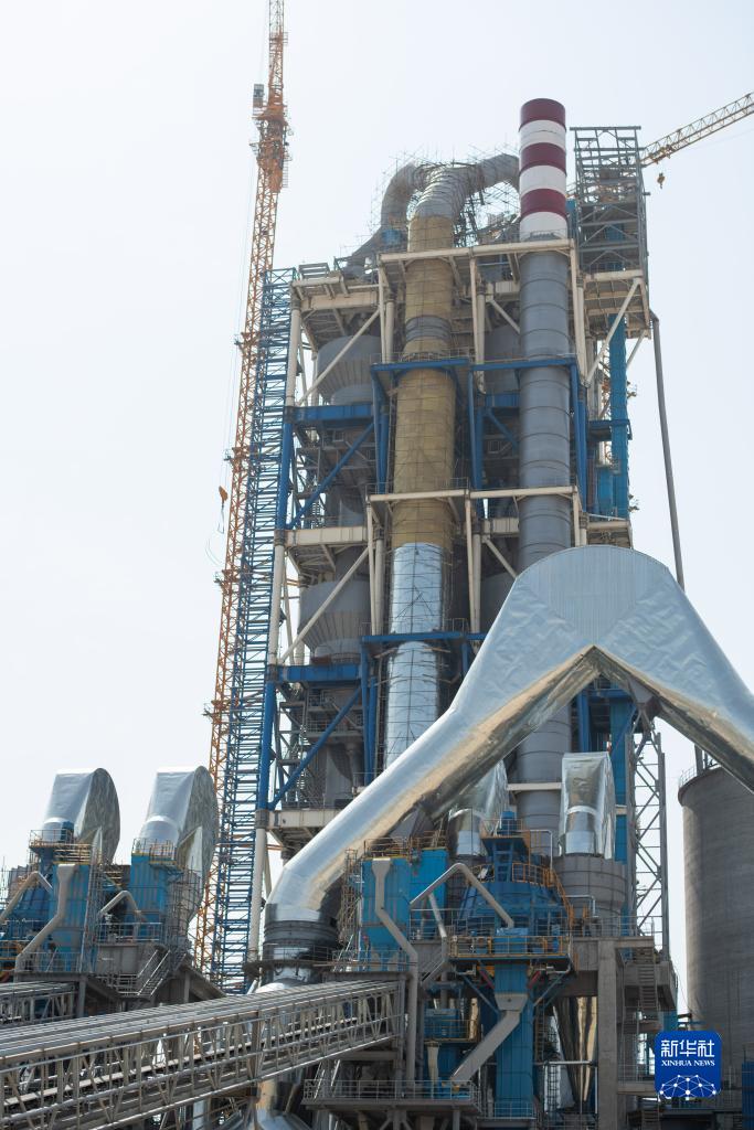 這是9月16日在烏茲別克斯坦撒馬爾罕州拍攝的水泥生產線項目預熱器。