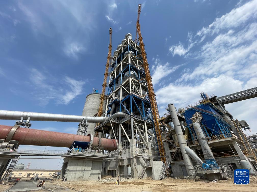 這是9月16日在烏茲別克斯坦撒馬爾罕州拍攝的水泥生產線項目預熱器。