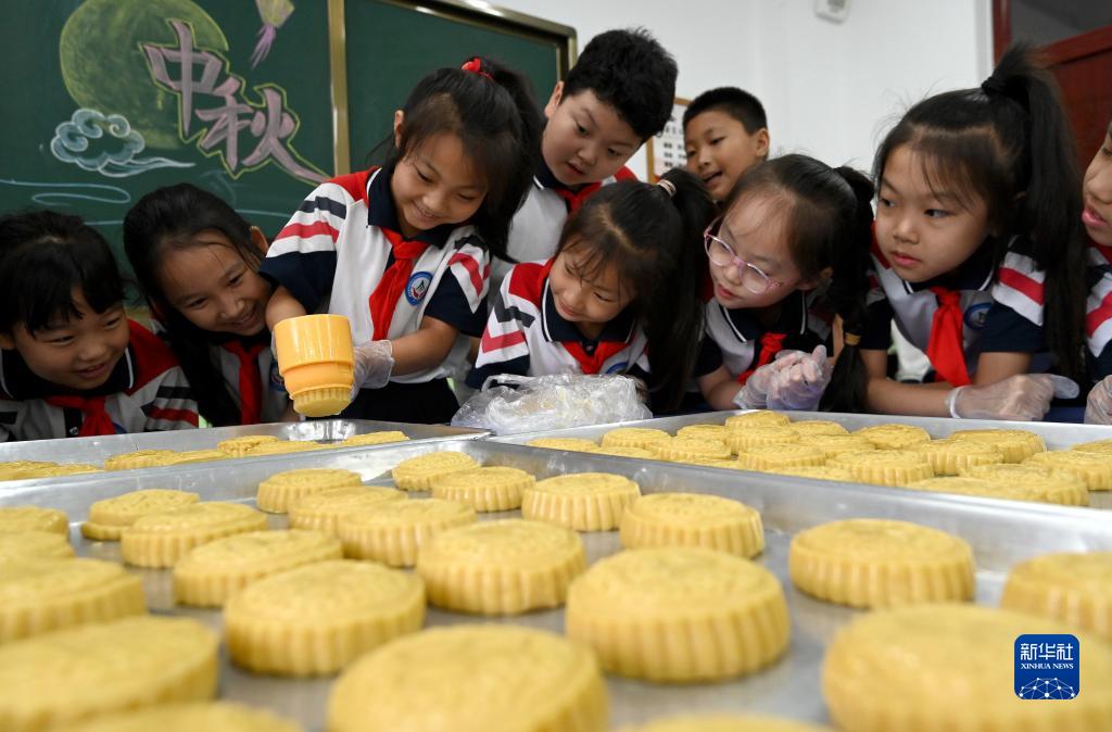 9月27日,河北省邯鄲市邯山區實驗中學小學部的學生在制作月餅。