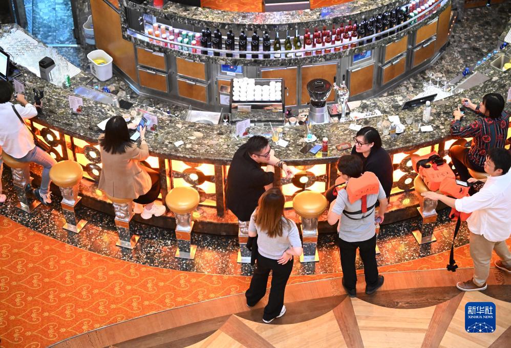 9月27日,游客在中國船舶集團旗下愛達郵輪“地中?!碧栢]輪上聊天。