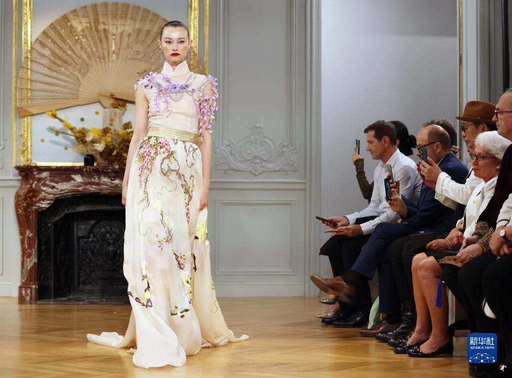 9月27日,模特在法國巴黎中國文化中心舉辦的“恭王府服飾秀”上展示設計師勞倫斯·許創作的恭王府系列高定服裝。