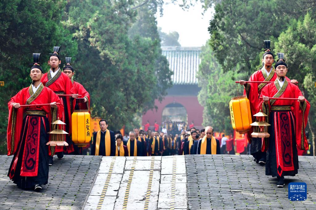 當日,中國(曲阜)國際孔子文化節·癸卯年祭孔大典在“孔子故里”山東曲阜孔廟舉行,以紀念至圣先師孔子誕辰2574年。