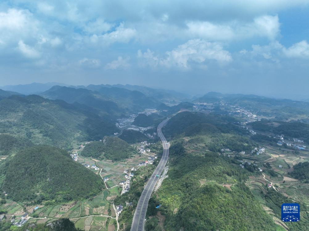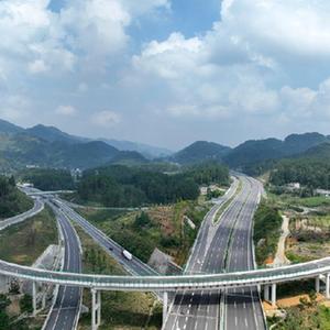 9月28日,在貴州省遵義市境內拍攝的蘭海高速重遵擴容工程新蒲段(無人機照片)。