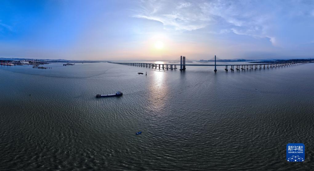 福廈高鐵泉州灣跨海大橋全景拼接圖(9月18日攝,無人機照片)。