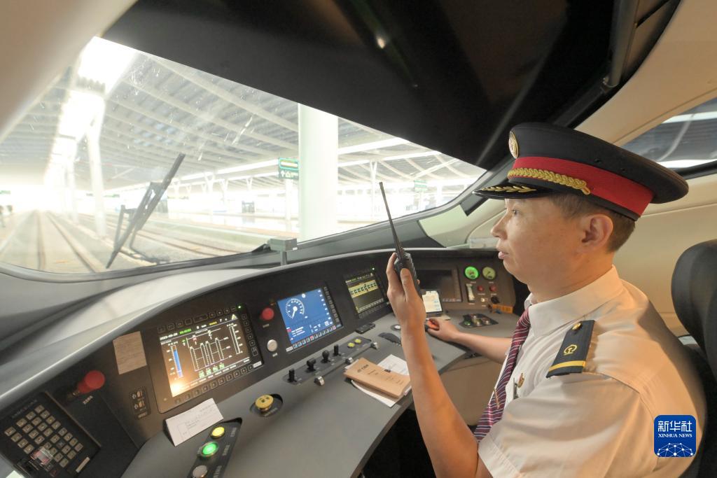 9月28日,G9801次復興號智能動車組司機陳承儀在進行開車前的準備工作。