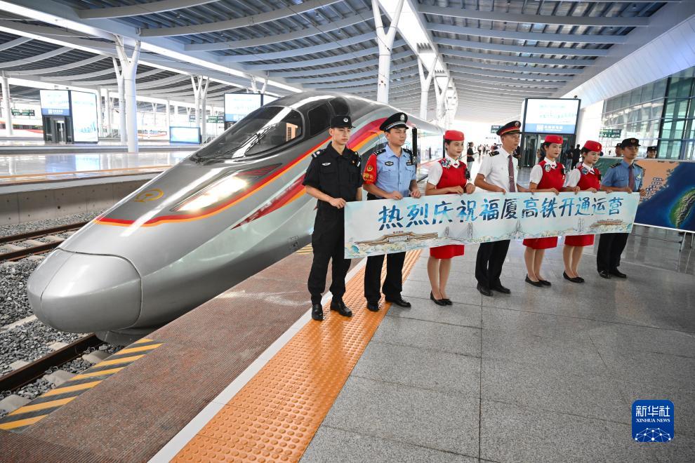 9月28日上午9時15分,福廈高鐵首趟復興號智能動車組G9801次列車從福州南站緩緩開出,一路南下,奔向廈門北站。這標志著中國首條時速350公里跨海高鐵——福廈高鐵正式開通運營。福廈高鐵北起福州,途經莆田、泉州,南至廈門和漳州,全長277公里。開通后,福州至廈門的列車運行時間將從現在的2小時左右縮短至1小時以內,兩地間形成“一小時生活圈”。
