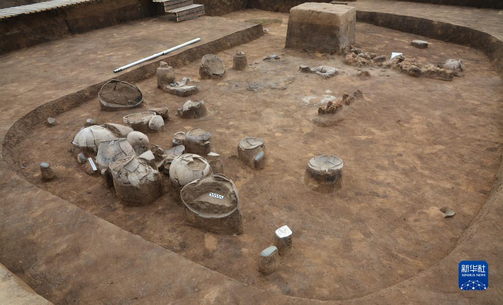圖為馬鞍橋山遺址祭祀坑JK1全景。遼寧朝陽馬鞍橋山遺址年代距今約7700-5500年,主體是一處紅山文化早期中型聚落,兼具居住與祭祀功能,對研究紅山文化聚落形態、社會等級分化與精神信仰具有重要價值。