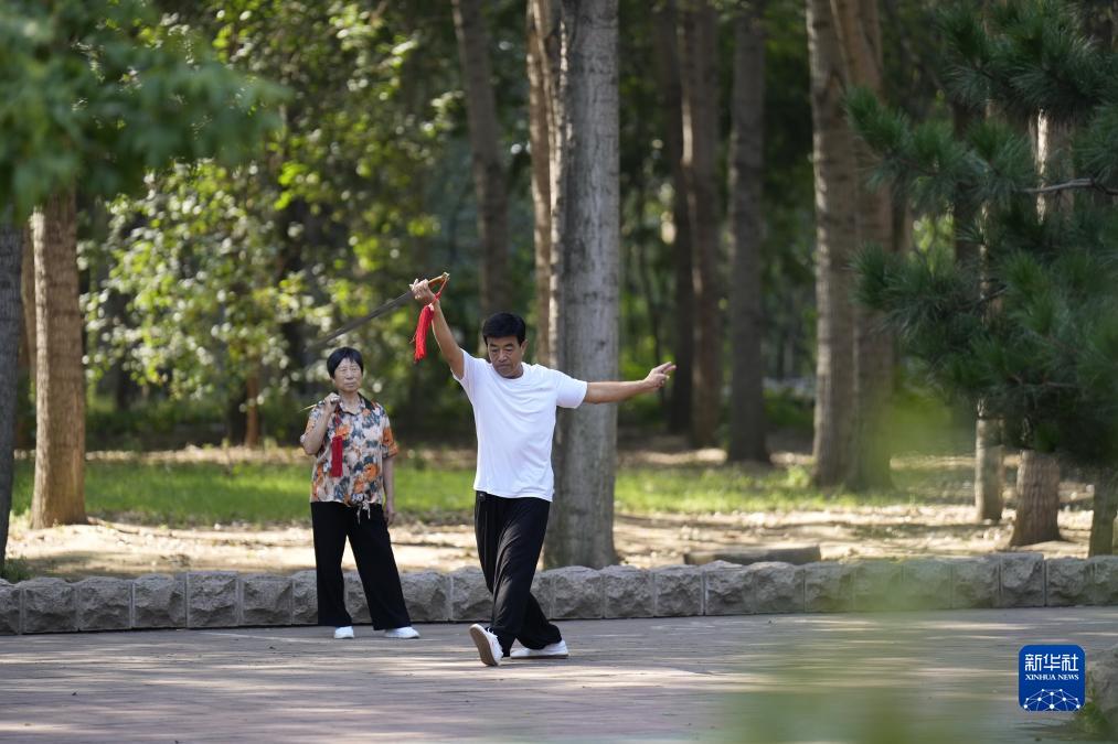 9月28日,市民在河北省樂亭縣古灤河生態公園內練習武術。