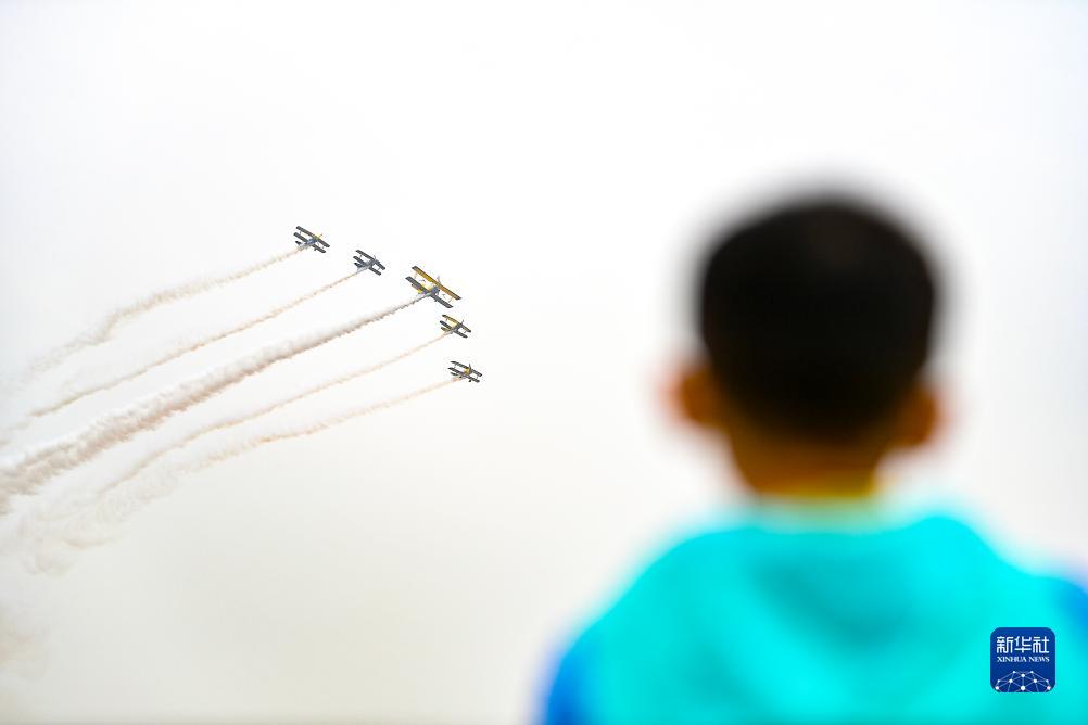 9月28日,特技飛行表演隊在2023太原國際通用航空博覽會上表演。