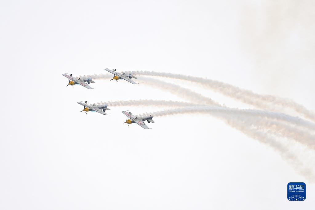9月28日,特技飛行表演隊在2023太原國際通用航空博覽會上表演。