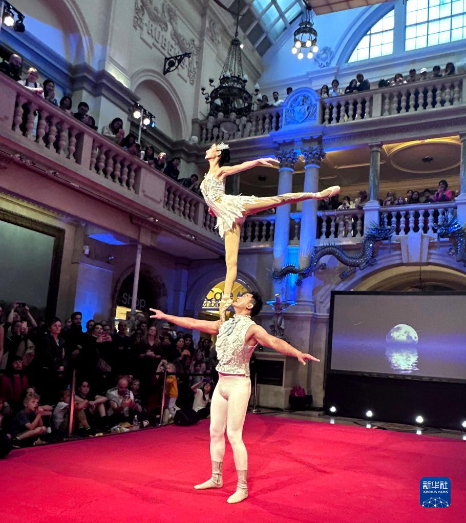 9月23日,來自廣州的雜技演員在英國布里斯托爾舉行的迎中秋文藝演出上表演。