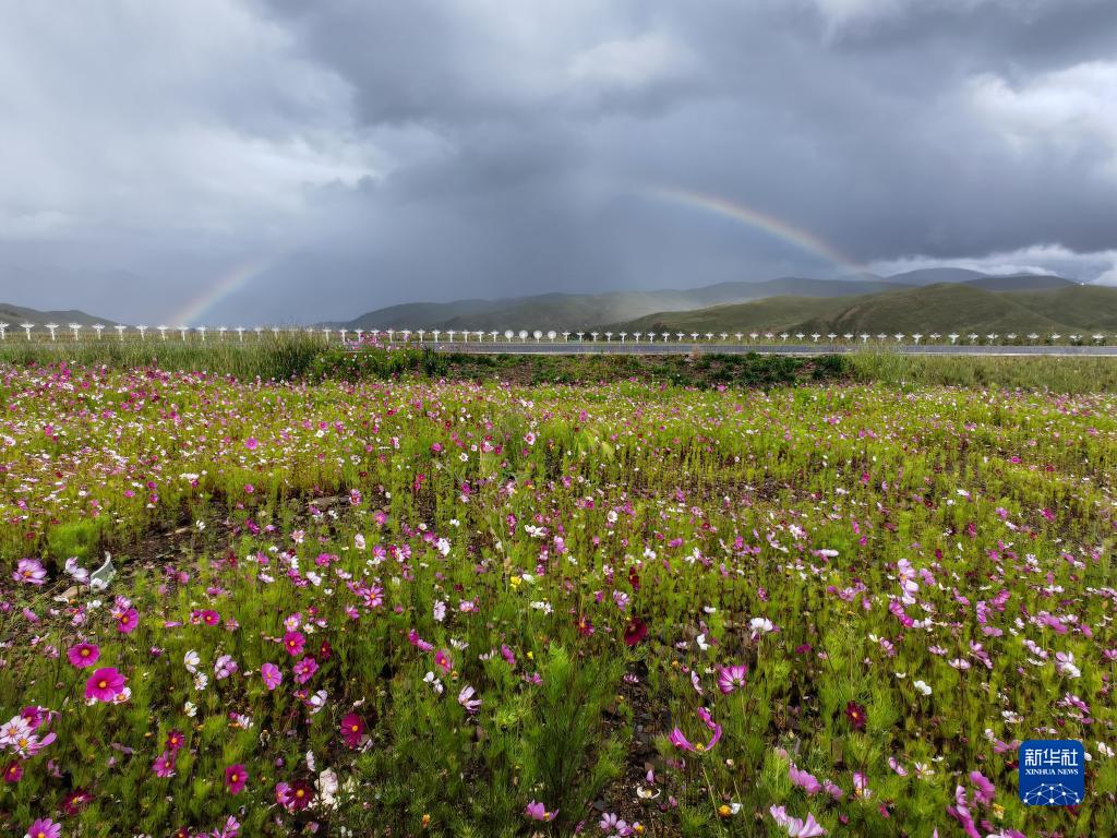 彩虹橫跨圓環陣太陽射電成像望遠鏡(2023年8月27日攝)。