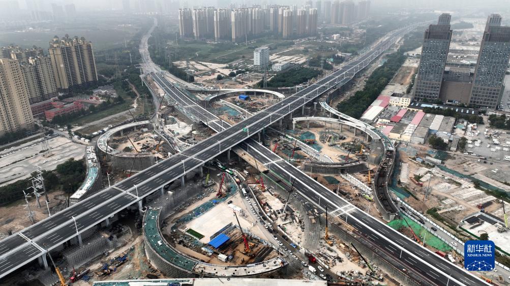 這是9月28日拍攝的河北省石家莊市北三環市政化改造項目體育大街互通立交(無人機照片)。